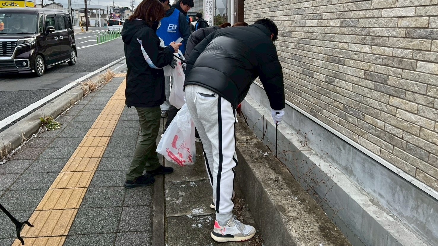 福島ダイハツチームは約3キロのコースを担当し、2時間かけてじっくり歩きながら沿道のごみを回収しました。